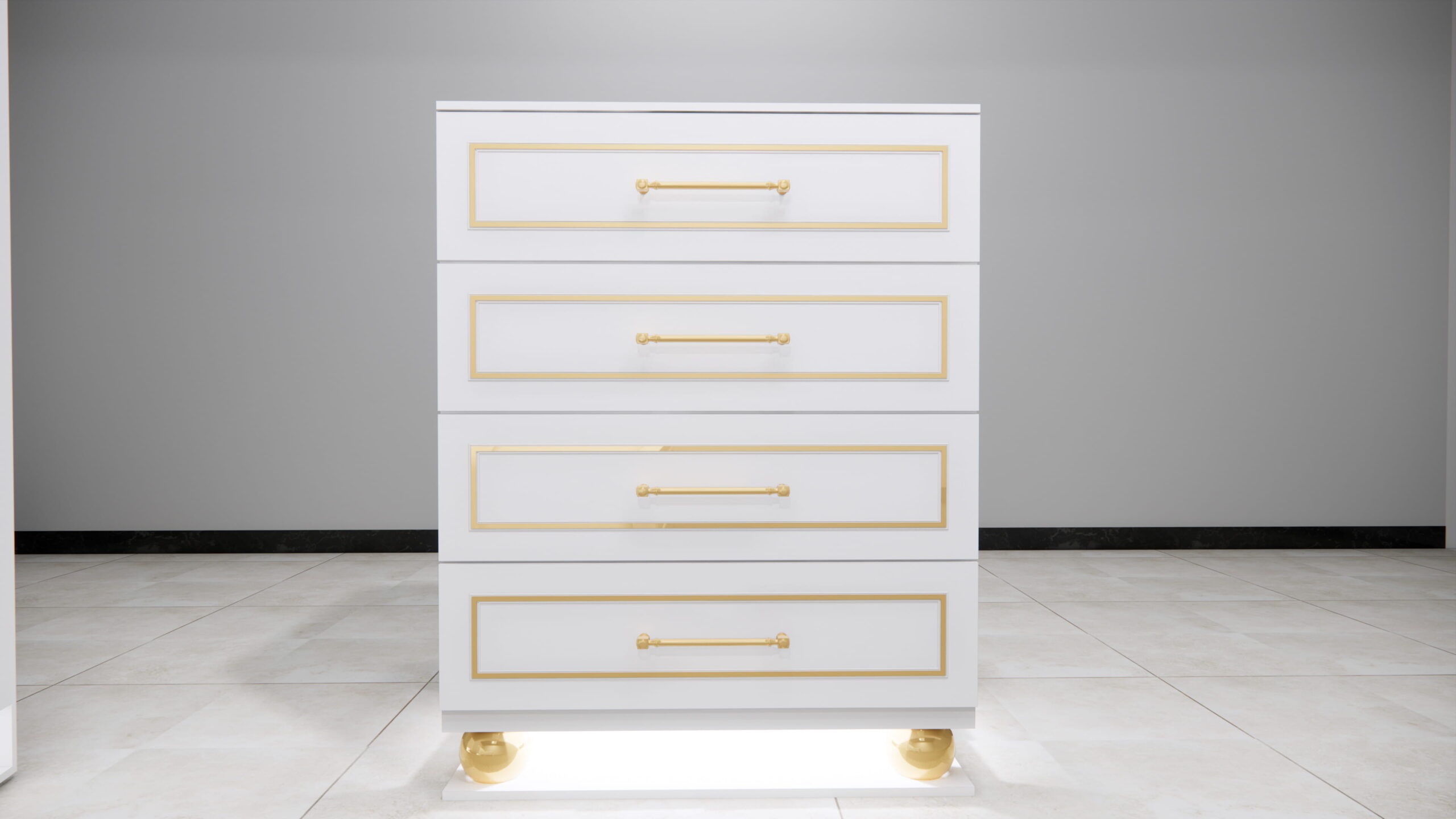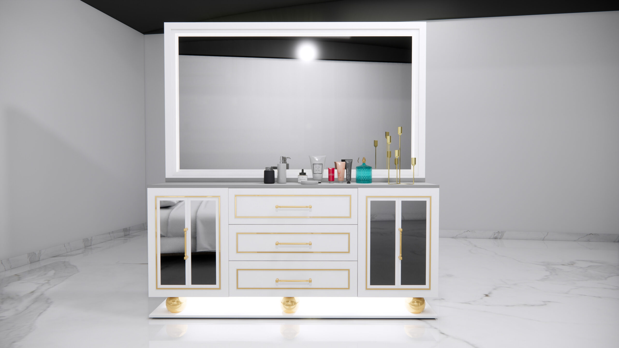 This bedroom set embodies contemporary glam and Hollywood Regency style, combining the purity of an all-white palette with just the right amount of metallic shimmer. The quality construction and sophisticated design create a serene, spa-like retreat that feels both modern and timelessly elegant.