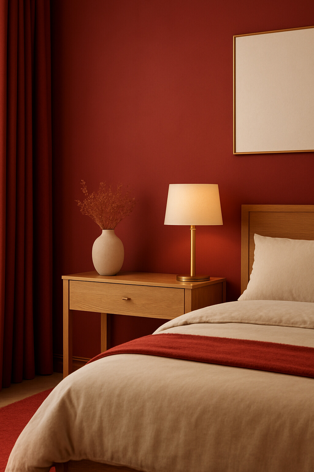 - Warm golden tones bring brightness to bedroom spaces